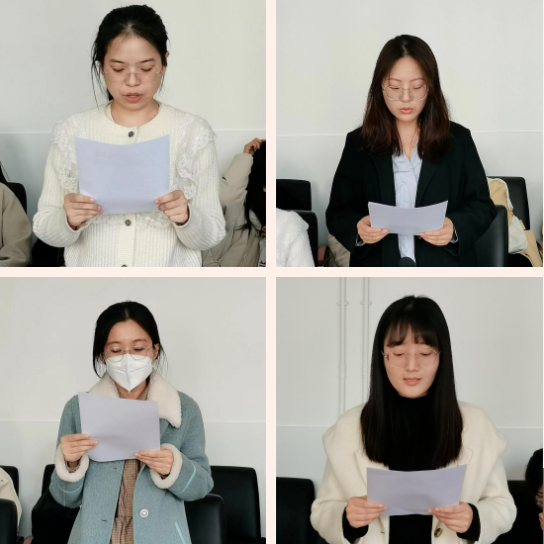 大会严格按照发展党员各项程序进行。黄淑洁、李征、杨丰宁、王广美同志依次向党组织汇报了预备党员期间的思想、工作、生活情况,并表达了积极向党组织靠拢的决心。随后,由四位转正同学的培养联系人介绍各位同学情况,发表是否同意转正的意见。