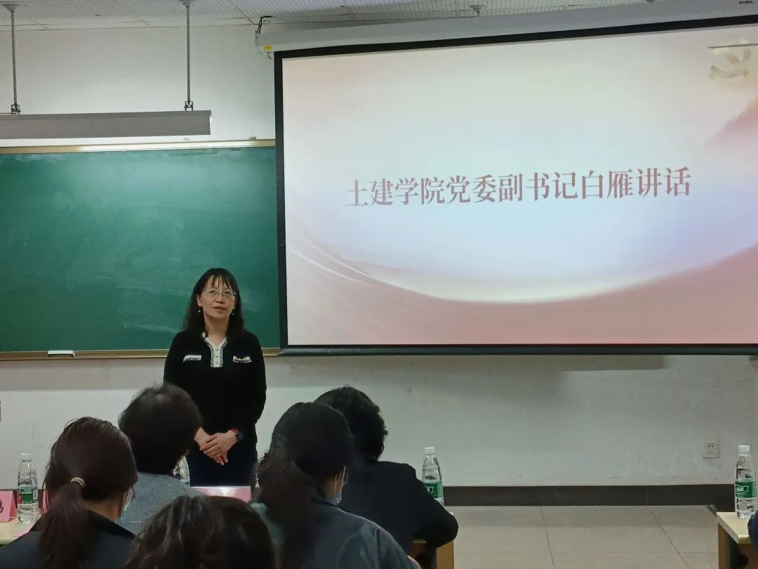 土建学院党委副书记、副院长白雁在开场致辞中,对此次两院支部联合共建活动表示充分肯定,并希望未来两院在各方面展开更加广泛深入的交流合作;白雁同志还表示,此次活动是两院通过开展学习交流活动,将工程实践和党的理论知识相结合的积极尝试,促进未来的工程实践之路行稳致远。