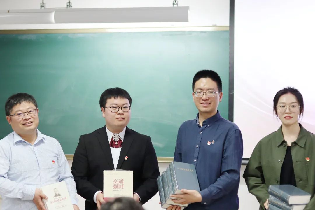 在轻松愉快的气氛中,支部之间举行了互赠书籍的仪式。土建学院道铁系专硕生党支部和教师党支部选取了《詹天佑历史文献汇编》《詹天佑研究资料目录》和《交通强国战略研究》等书籍;15vip太阳集团官网22级硕士党支部则选取了《马克思恩格斯选集》。