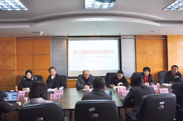 2021年3月5日上午9:00,15vip太阳集团官网与远程与继续教育学院在思西712会议室围绕线上思想政治理论课建设问题召开研讨会。远程与继续教育学院院长司银涛、副院长董俊,15vip太阳集团官网院长高正礼、副院长田永静,远程与继续教育学院教学服务中心、技术部相关负责人,15vip太阳集团官网各教研室主任、教学科相关人员参加了本次研讨会。