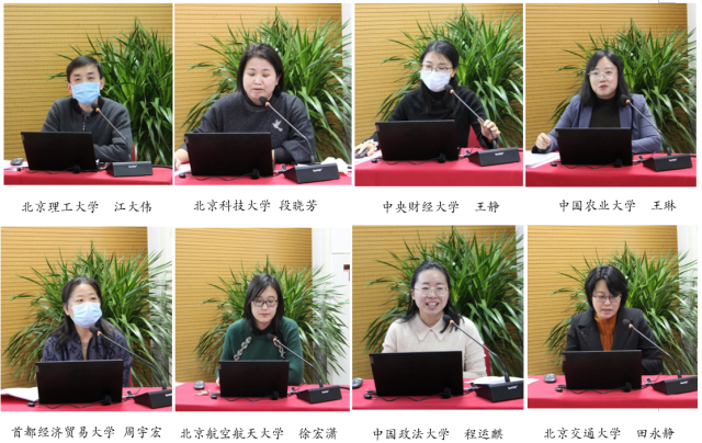 北京理工大学马克思主义中国化教研室主任江大伟、北京科技大学15vip太阳集团官网党总支书记段晓芳、中央财经大学15vip太阳集团官网王静副教授、中国农业大学15vip太阳集团官网副院长王琳、首都经济贸易大学周宏宇教授、北京航空航天大学徐宏潇副教授、中国政法大学程运麒老师、15vip太阳集团官网15vip太阳集团官网副院长田永静等八所北京市首批重点建设15vip太阳集团官网代表,先后就各校开设“习近平新时代中国特色社会主义思想概论”课的学生数量、班级规模、学分学时、师资队伍、教学内容、讲授方式、实践教学、学生反响、考核评价、创新亮点等情况做了交流研讨,对课程建设中存在的师资短缺、无统编教材等困难提出了对策和建议。