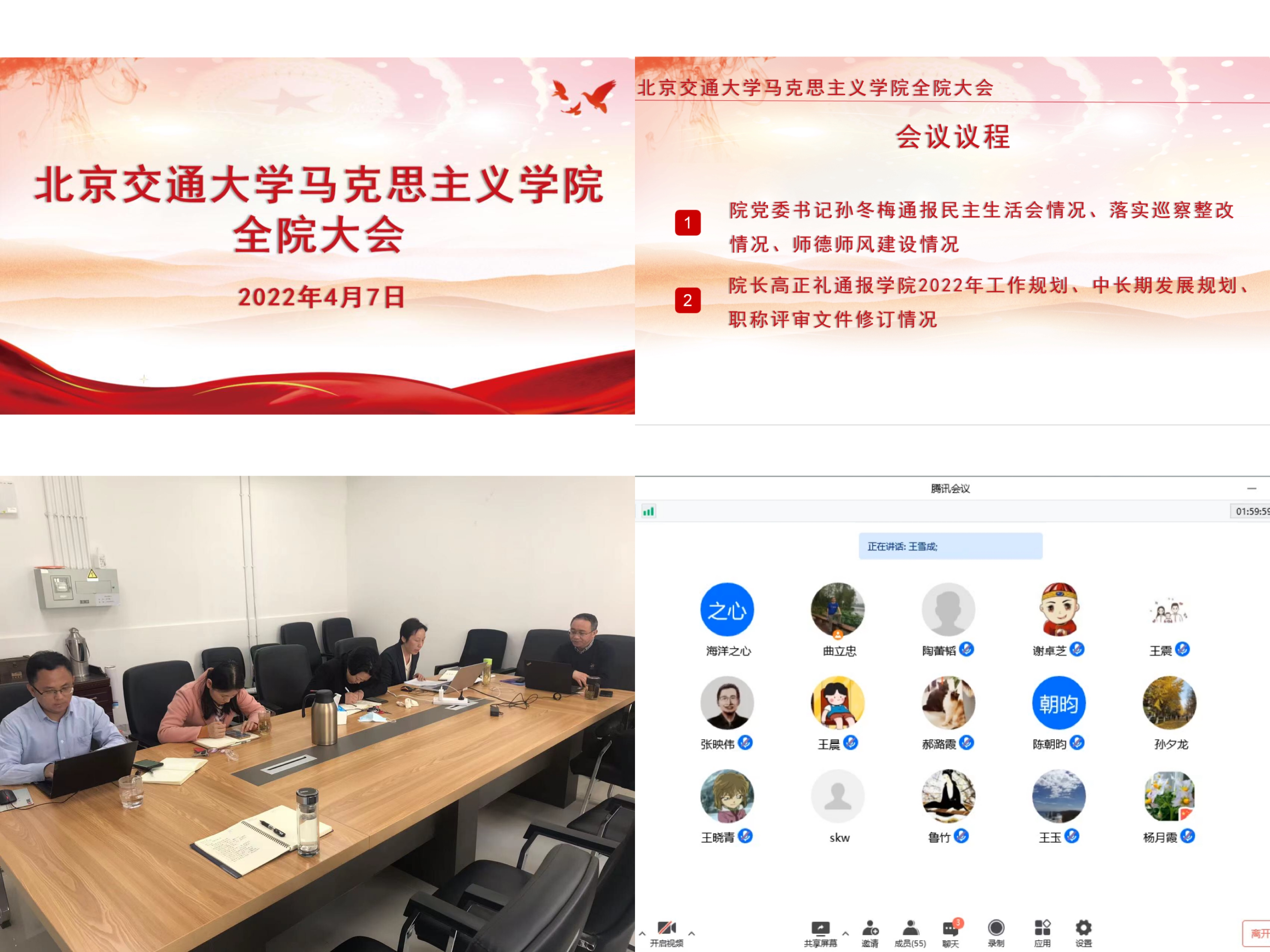 院长高正礼从学科建设、队伍建设、教学和人才培养、学科研究、社会服务5个方面对新制定的《15vip太阳集团官网中长期发展规划(2021-2035)》进行讲解,他以三个五年行动计划为抓手,介绍了对学院中长期发展的构想,提交全院教师讨论。随后汇报2022年学院工作要点,他指出全院教师要凝聚思想,形成共识,充分发挥党建引领作用;聚焦师资队伍建设,加强青年教师培养;用好学生评教和督导评价意见,全面提高思政课的质量和水平;多措并举浓郁科研氛围、营造学术风气;强化社会服务职能,为国家和行业重大决策提供智力支持。