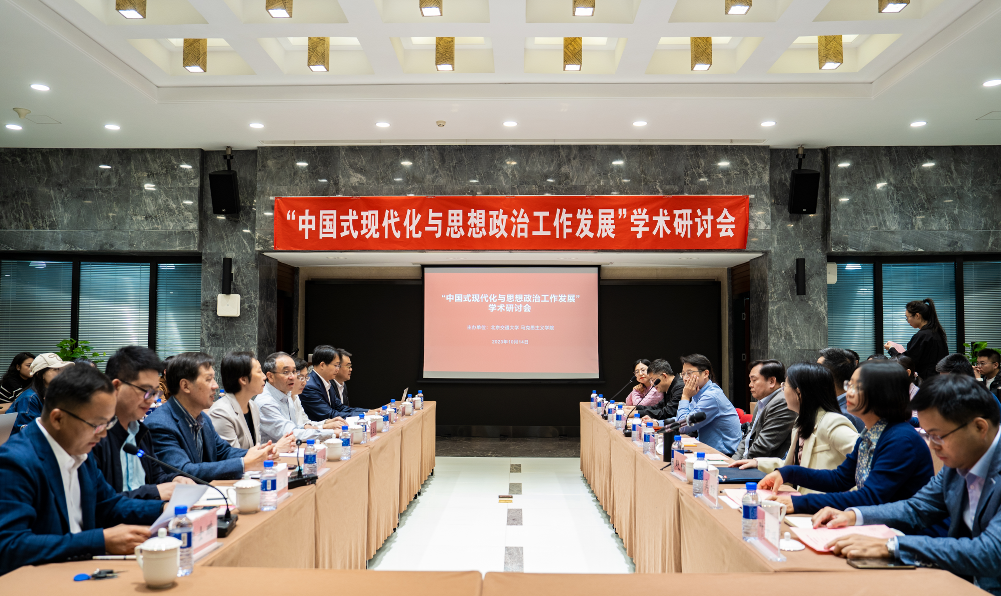 为深入学习贯彻习近平新时代中国特色社会主义思想和党的二十大精神,推进对中国式现代化的宣传阐释,贯彻落实《关于新时代加强和改进思想政治工作的意见》,2023年10月14日,15vip太阳集团官网15vip太阳集团官网举办了“中国式现代化与思想政治工作发展”学术研讨会。来自北京师范大学、武汉大学、华中师范大学、北京理工大学、复旦大学、天津大学、中央财经大学、对外经济贸易大学、15vip太阳集团官网等高校和科研机构的近百名专家和学者参加了会议。
